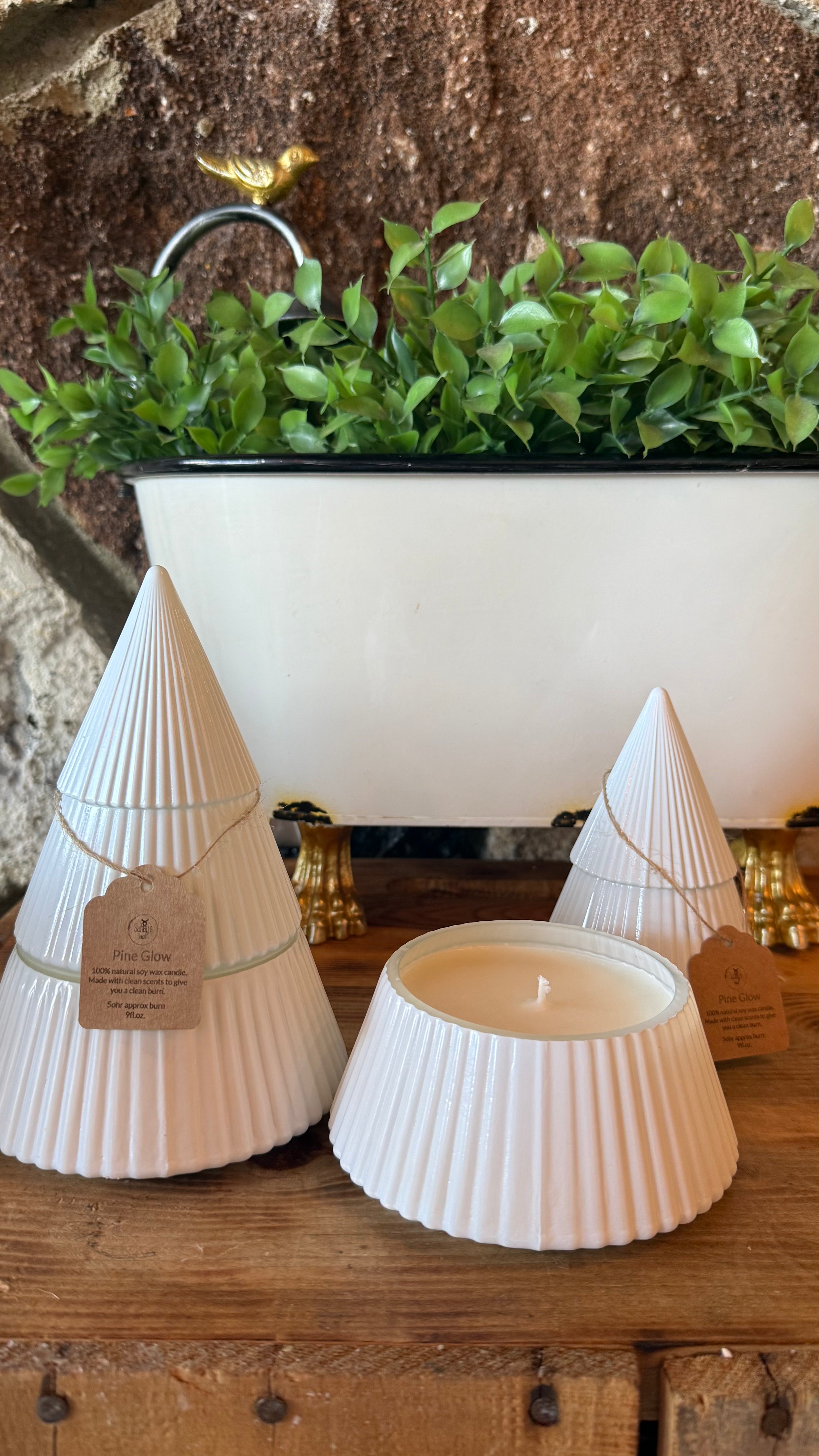 Our Christmas tree candles come in a soft scent of clove leaf, cinnamon leaf, cedar leaf, cedarwood, orange sweet, and sandalwood.